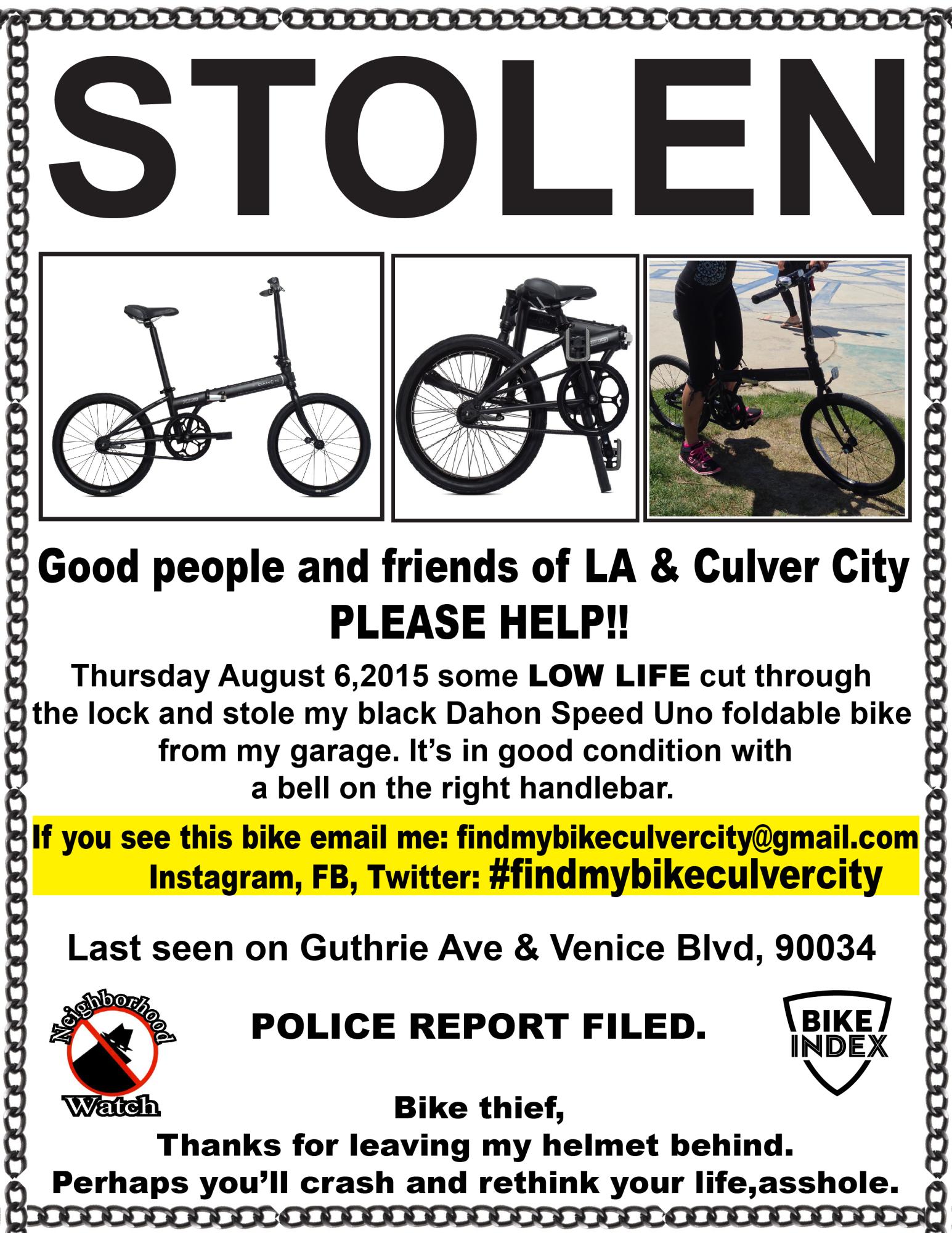 Please let me know if you see it! Email,Instagram,Twitter,FB #findmybikeculvercity