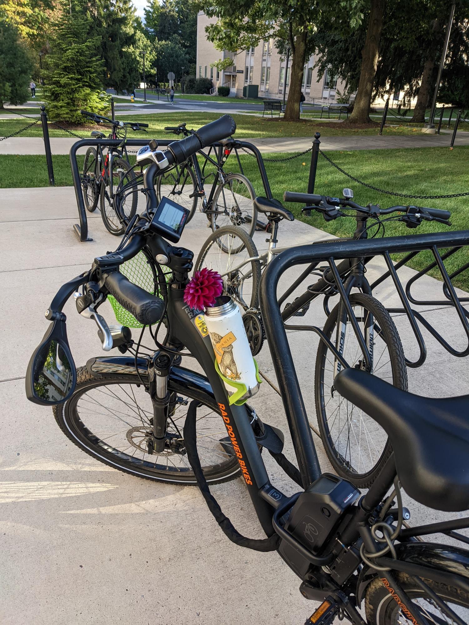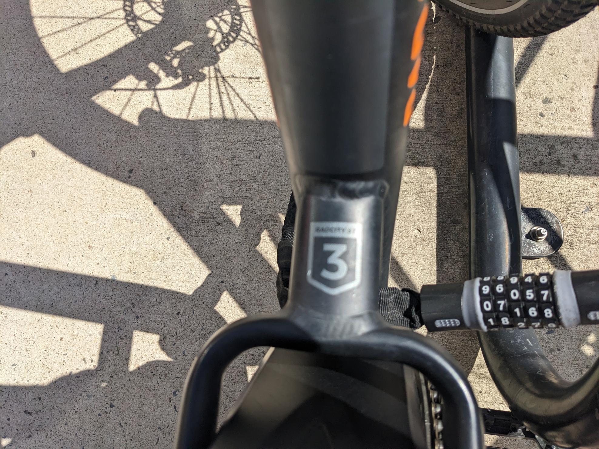 Bike was locked to a metal fence behind my apartment building and under a weather cover. I found it missing this afternoon, but the last time I can confirm that it was there was last Thursday at 6pm.