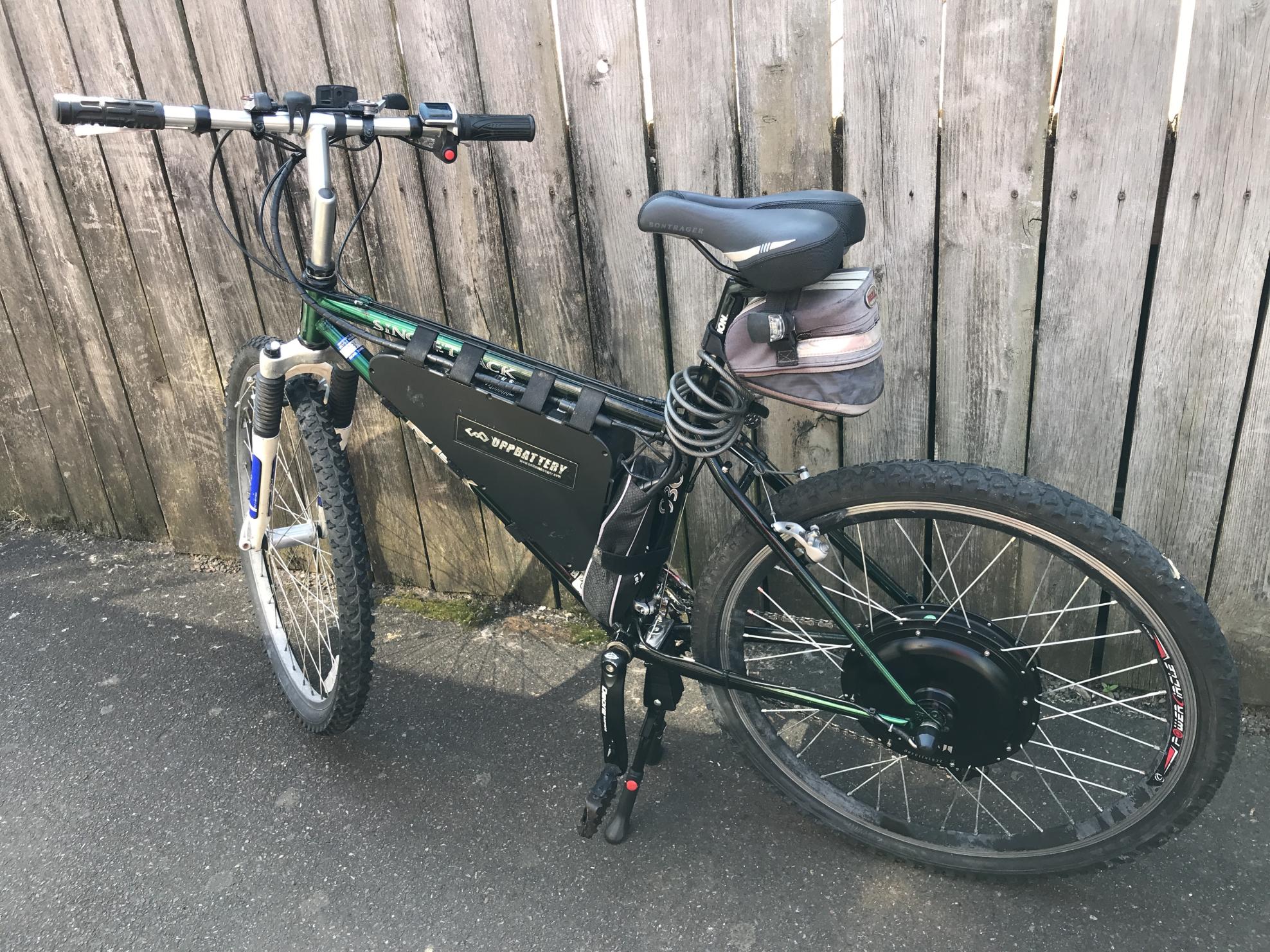 Bicycle stolen from basement washroom of property. I left this bicycle unlocked (lock is on the bike), but in a locked washroom, charging overnight, and went to check on it at 1:40pm the next day. The bike and charger were gone.