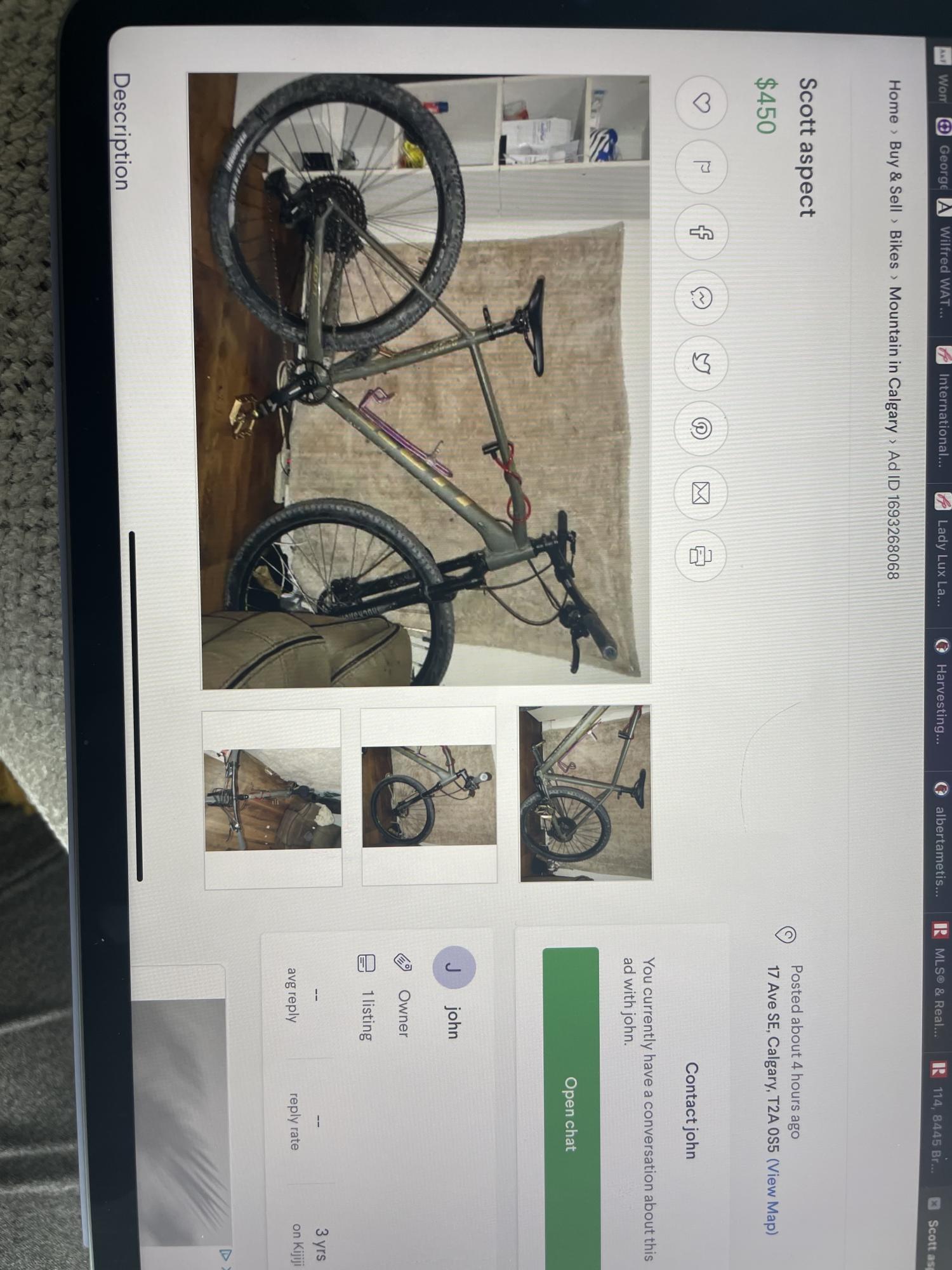 The frame was taken off the front tire which was locked and secure. The front tire is different from the back. We saw whoever stole it post an add on kijiji selling it, I have a photo posted of the add.