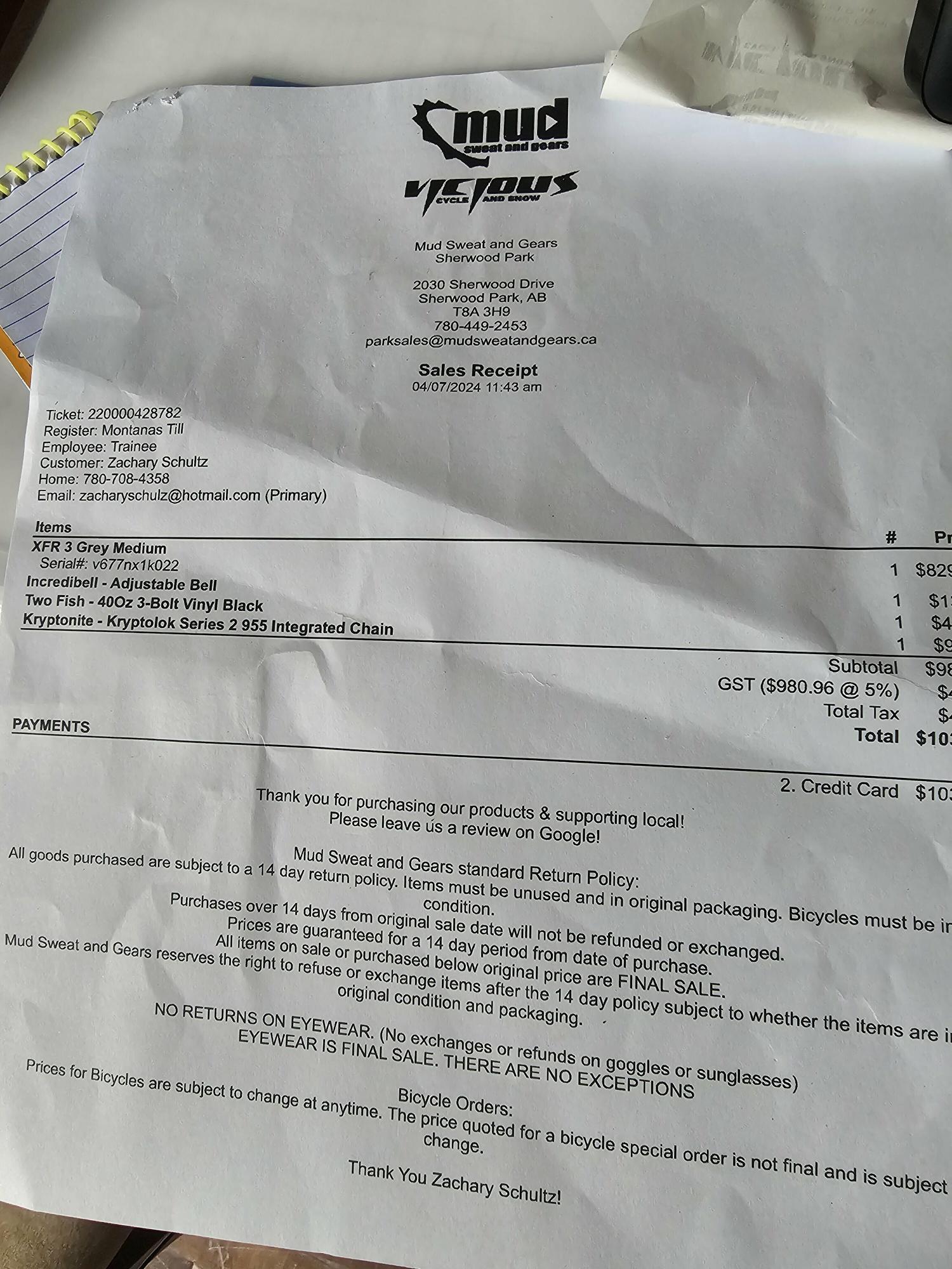 Bike frame number