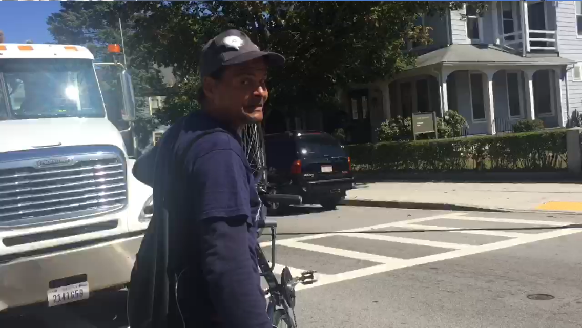 At approximately 1:20pm on 9/17/2017 a latino man around 40 years old broke the bicycle rack and stole my Trek bicycle. The bicycle was locked with a U lock around the frame and front wheel so the thief had to wheel it on the back wheel down main street. A witness saw this happening and filmed it with a picture of the man's face. A video can be seen at the following link https://www.youtube.com/watch?v=DGt2Wma9xzg