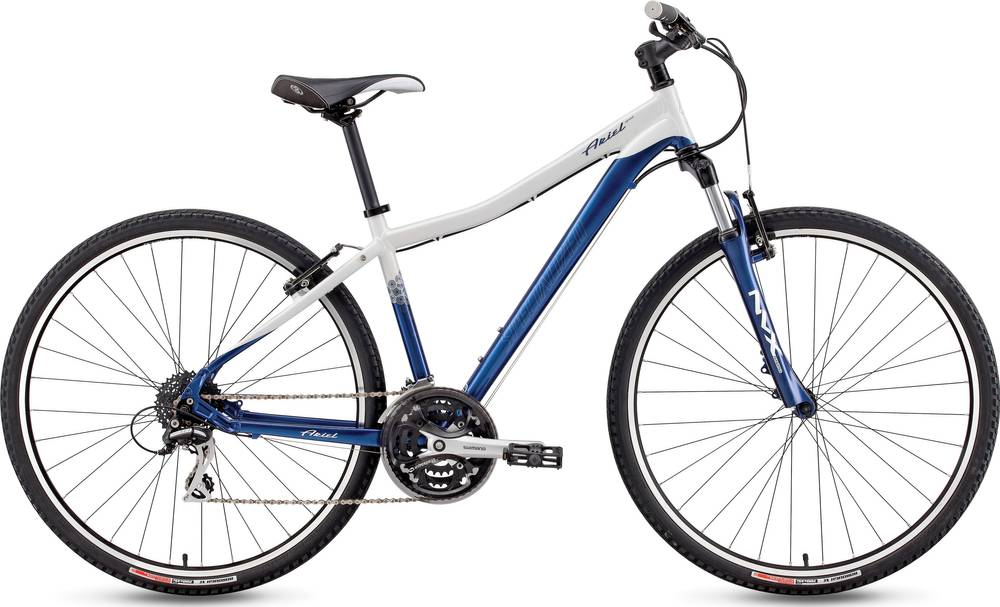 Stock photo - my bike has lots of mods - has been converted to disc brakes, new rims (black with silver-ish writing, cannot remember the brand!) wheels have purple metallic wheel quick-release bolts. Rear pannier rack, tire fenders, and handlebar bell and mirror. Hand grips are grey and black and ergonomic shaped. Seat is black.