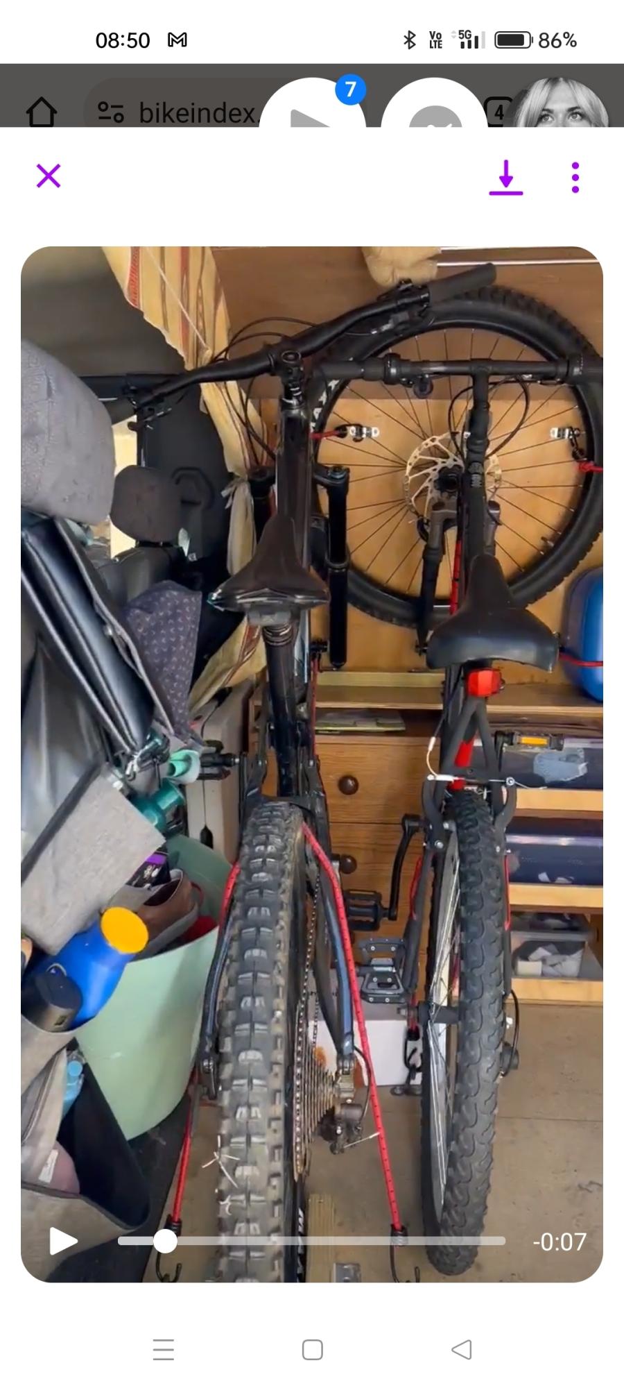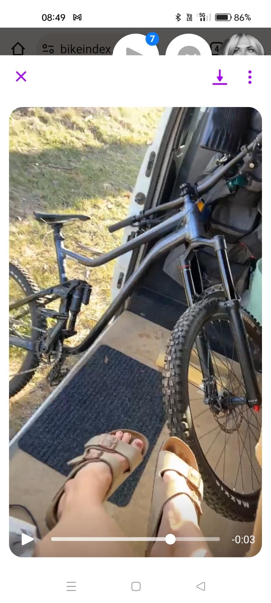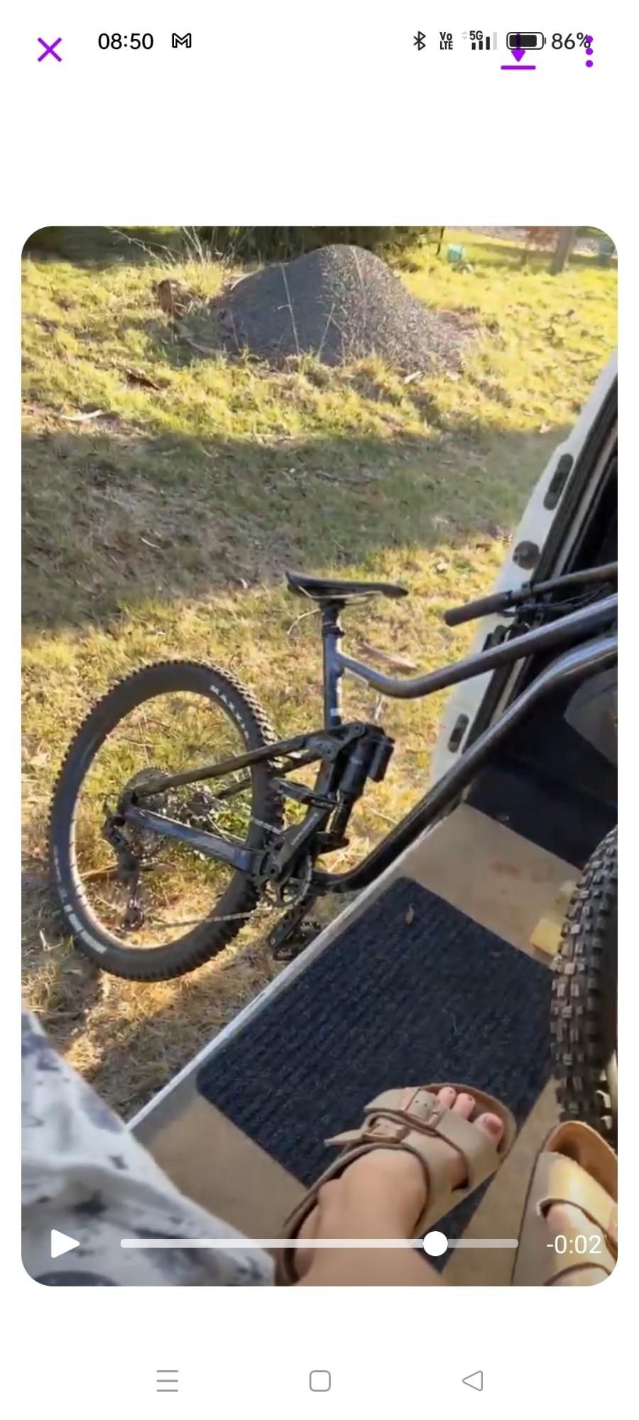 Van was broken into. Bike was mounted on front fork bracket with front wheel stored on floor. Bracket was unscrewed with bracket still attached to fork. Front wheel stolen separately. Evakool RV62 car fridge, two ripcurl wetsuits among other items stolen