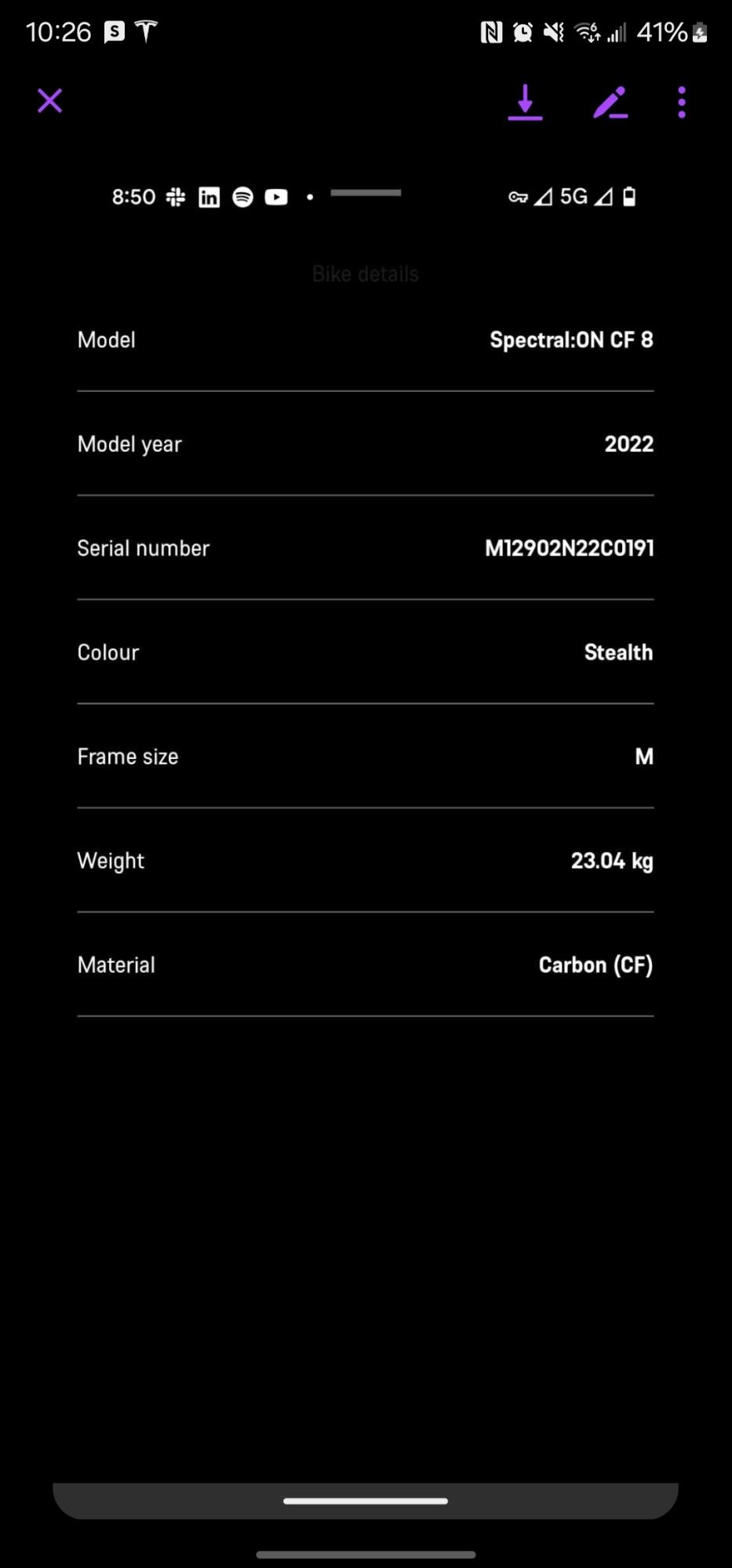 Bike frame number