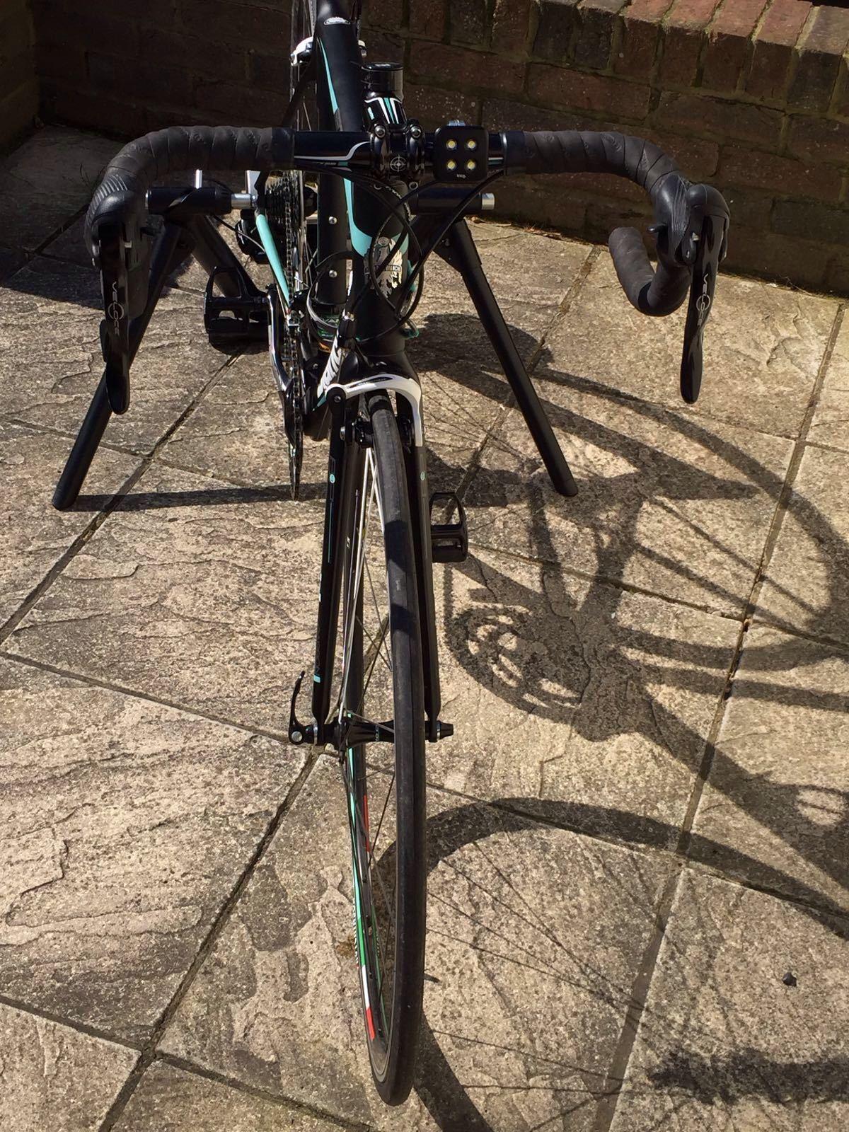 Bike was taken from the bottom of Waterloo Place in London, it was locked opposite the Duke of York statue on September 11th 2016, next to where the team buses were located for the Tour of Britain. The bike was locked from around 17:30 until 18:15. As I reported it to the police a gentleman approached asking what had happened as his bike had also been taken from the same spot near to that time. He said he had seen the Bianchi just before 18:00 still locked though when he had returned to double check the area he only saw someone riding off towards Trafalgar Square. This suggests that this was a targeted area and the thieves took at least two bikes that afternoon. From what I remember he said he had a Ribble road bike. Police said due to budget cuts, CCTV in the area has been removed. Because the model is now discontinued and because of the markings especially on the top tube, this bike isn't seen too often on the road & online, so could potentially be noticed. The bike was registered (luckily around 2 hours before it was stolen!) with the police at their pop up stand at Trafalgar Square, therefore there will be a register number on the bottom of the frame along with the UV prints. The only thing not attached is the sticker they supplied deterring thieves as I never got chance to attach it. They said they numbers are indestructible, unless heavily tampering with the frame. Thanks