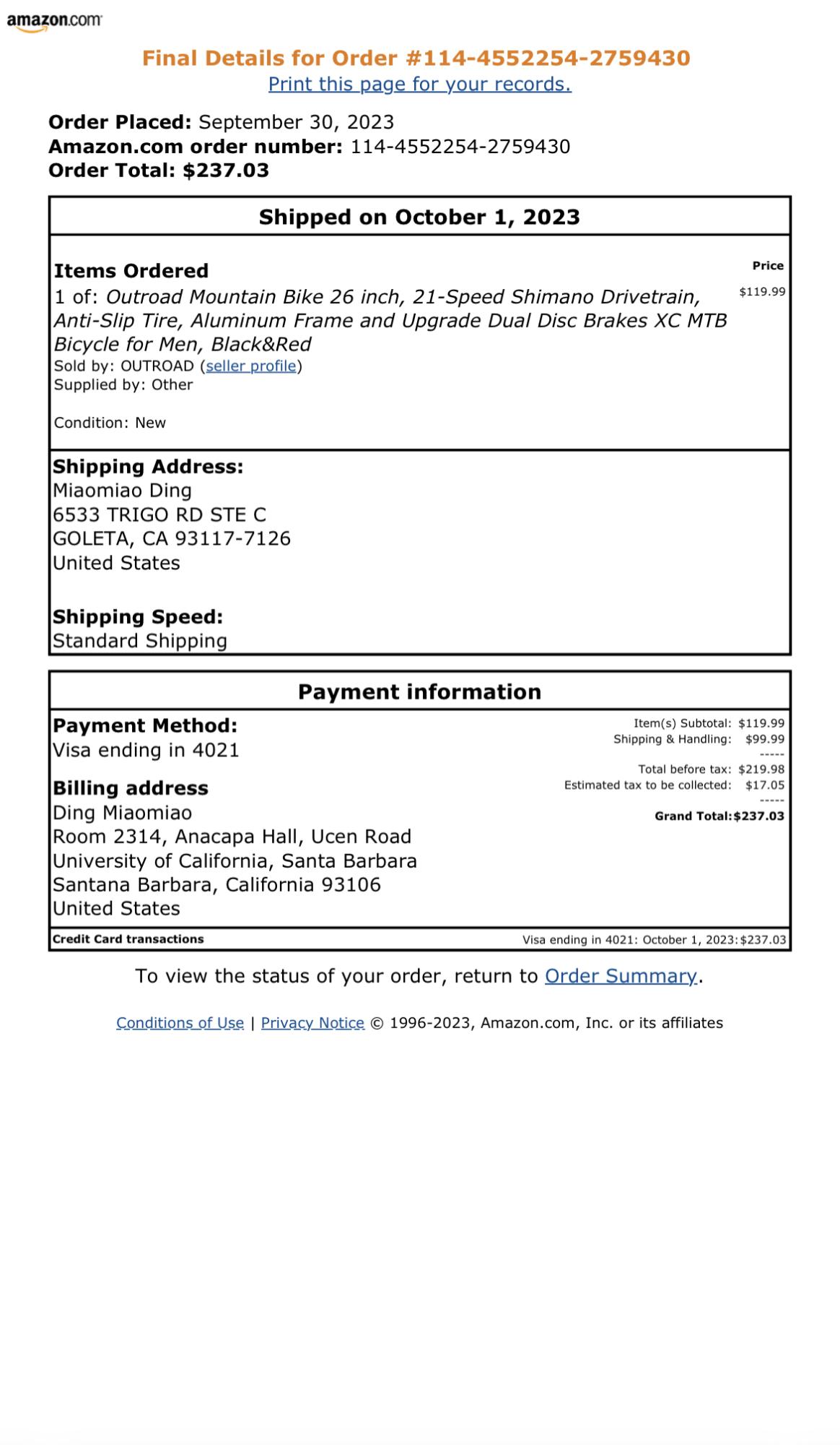 Address of bike theft