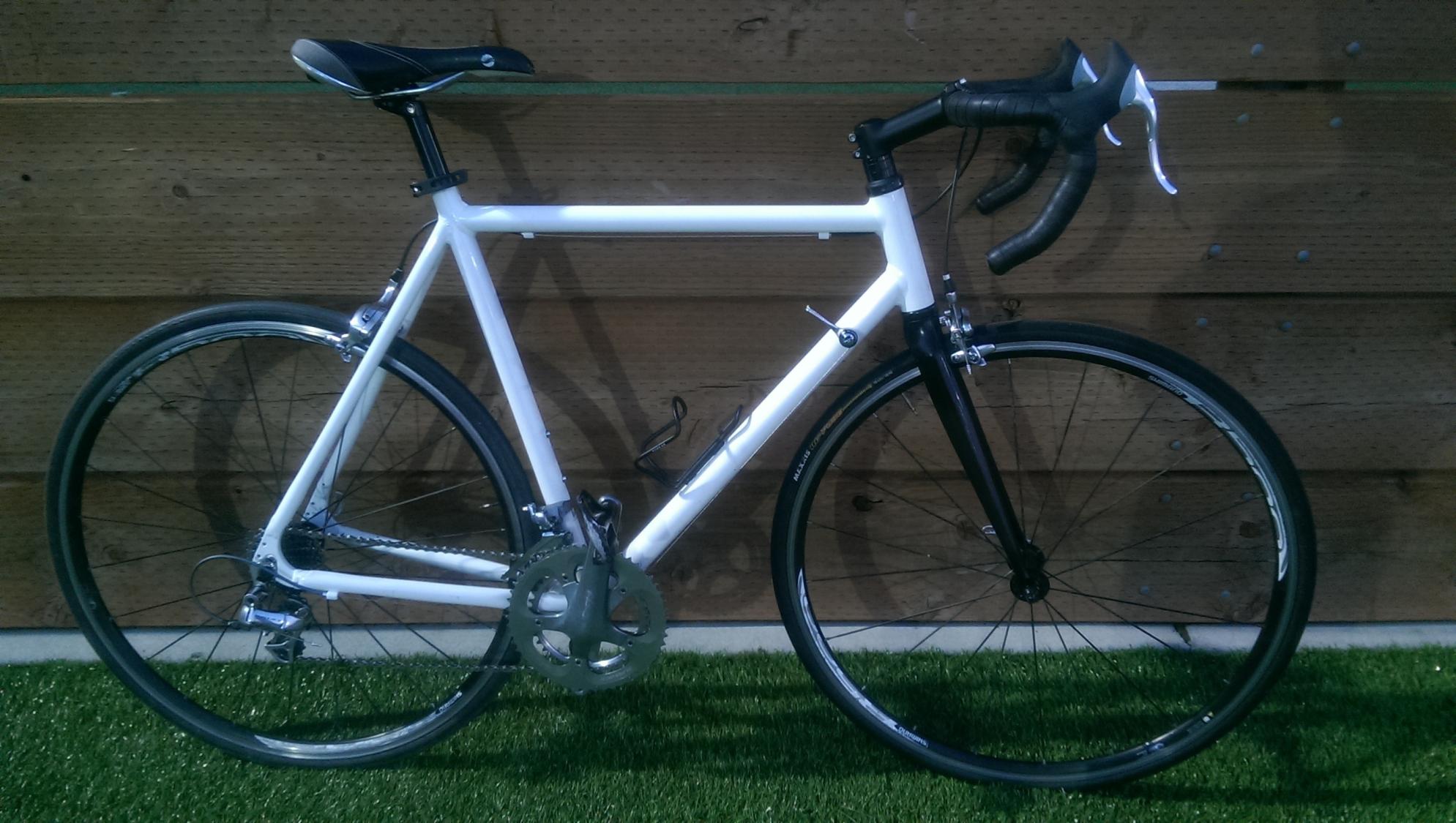Probably stolen around 2pm (but certainly between 10am-4pm) on a Wednesday from Columbia and 10th on Seattle University campus. Cable lock chopped and taken with bike, probably. High-trafiic area in daylight is evidently not enough security. My fault for the shitty lock.