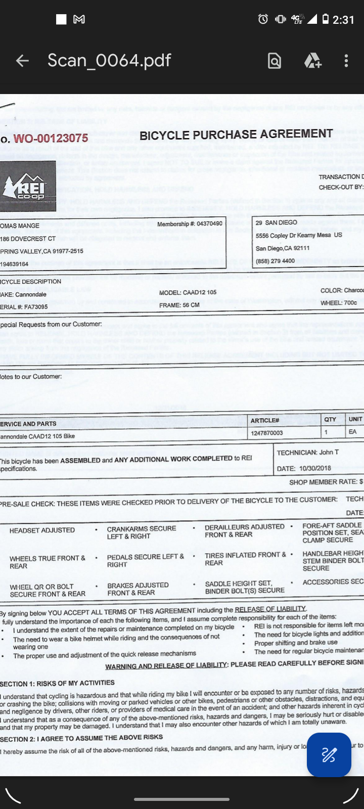 Bike frame number