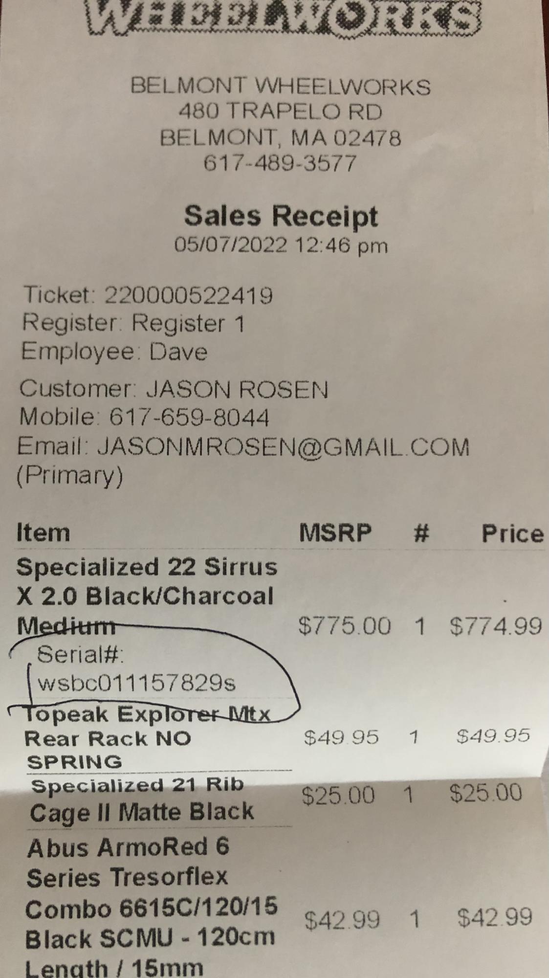 Bike frame number