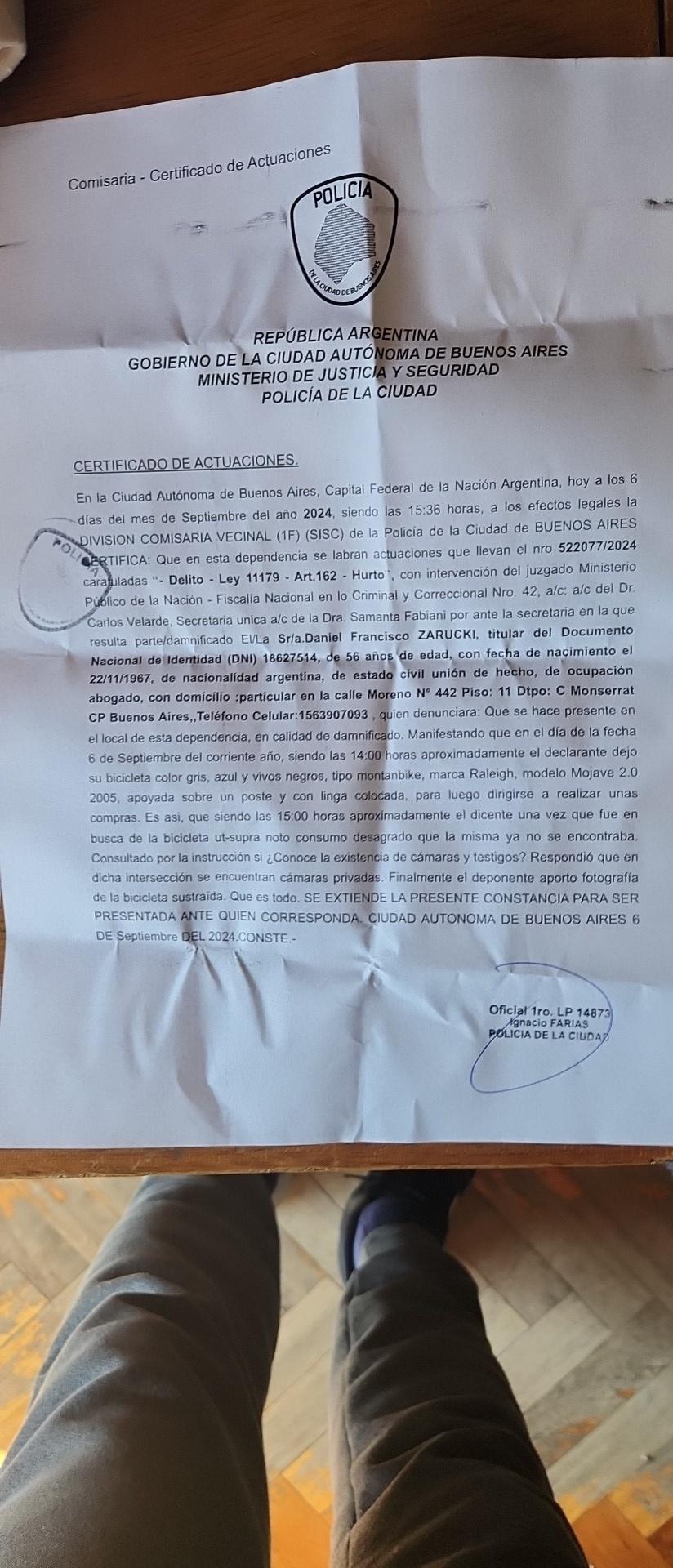 Information about the theft