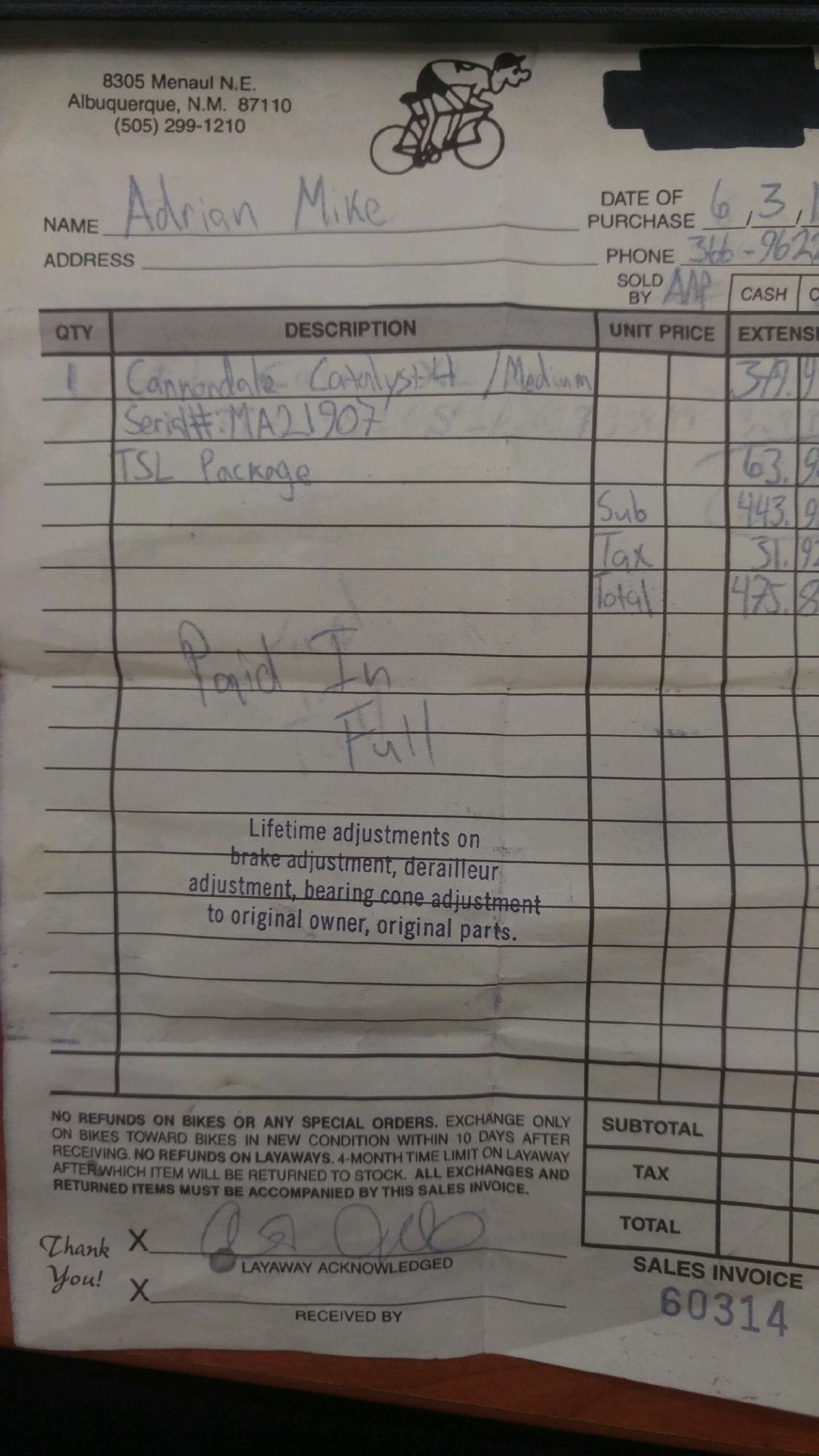 Bike frame number