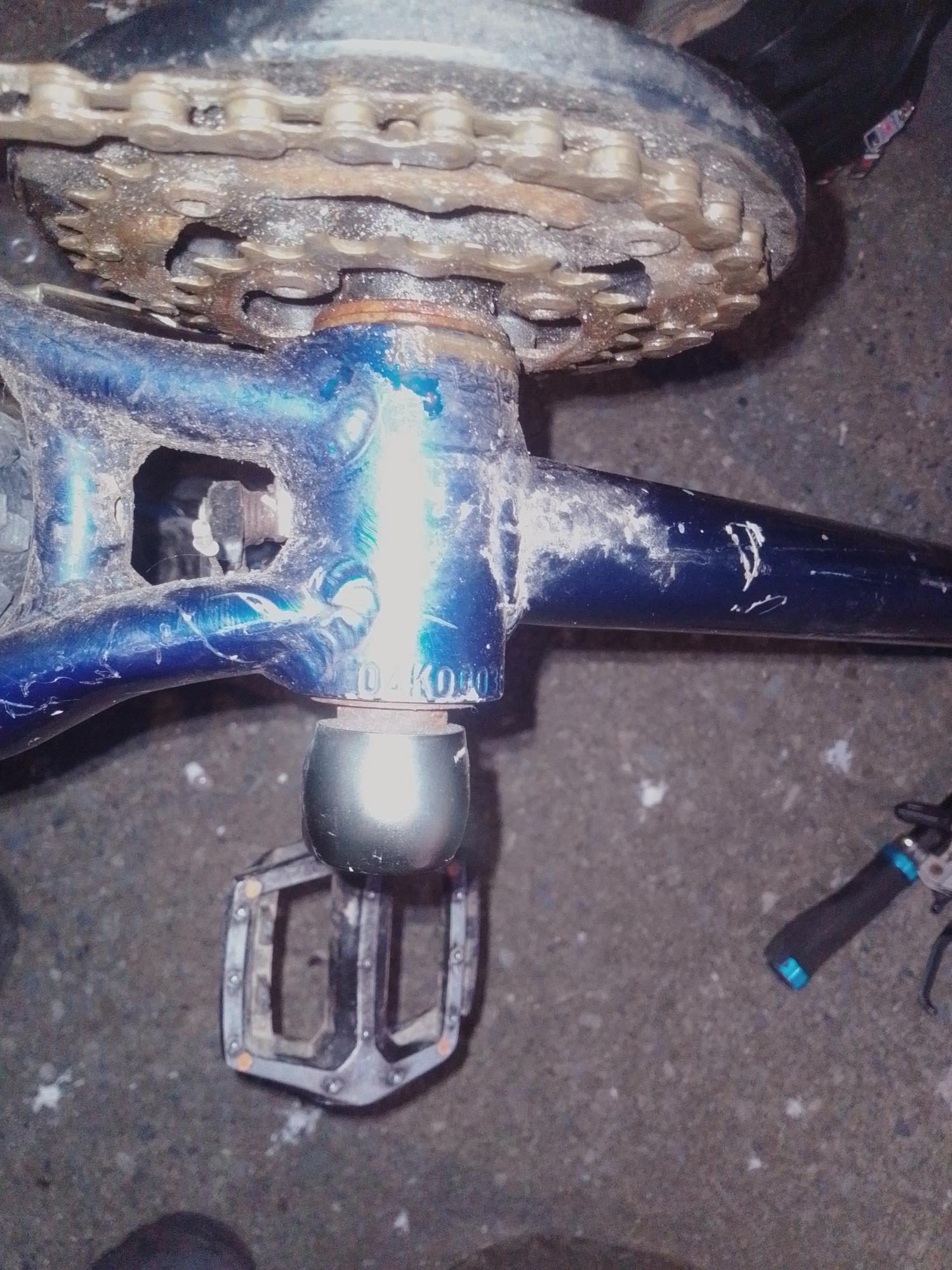 About 8pm,the night of May 26, 2024 the bike was u locked with my Norco malahat, witnesses stated the tire was removed and that they cut through the rim to take the u-lock off. It has been spray painted blue covering the original decals and a padlock is added to the back tire it is just brake on the back and front with marzochi shocks
