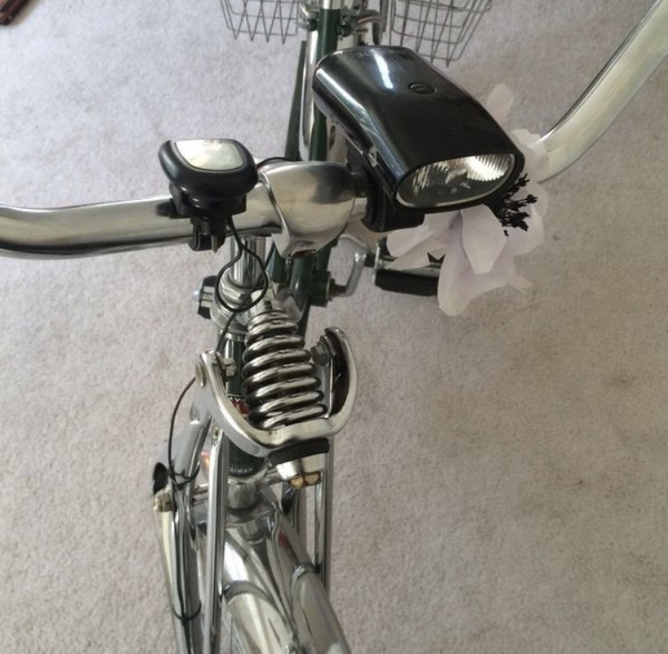 North Queen Anne near Nickerson and 6th Ave. Between Saturday 4/15 @ 3pm and Sunday 4/16 @ 6pm. Hard to mistake for other bikes. Legitimate cruiser from 70s 80s (not a replica/remake). Sliver splash guards and white wall tires. Forest green. Some rust/paint chipping on body. White diamond shapes on body. Large rear double-basket. Fabric Flower, mileage counter and black light on front. Please call me or the cops.