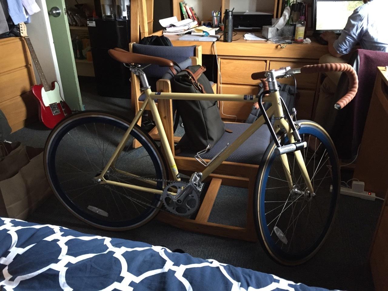 At 9:10pm on Tuesday, November 24th, I left my bike sitting adjacent to the door of Walgreens on Telegraph Avenue while I quickly went to grab food. Coming out exactly one minute later, my bike was gone. After talking to a store employee, we found security footage that showed a tall, white, bearded man clad in black and wearing a black backpack and bandana taking the bike and riding away at exactly 9:11pm.