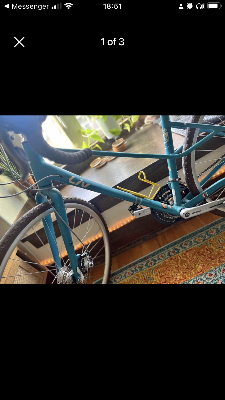 Asking for help recovering my bike, in case anyone sees anything please reach out! I use it as my primary form of transportation and it was stolen out of a locked car last night on 145th NE in Seattle. It’s a Liv BeLiv women’s small bike teal frame. It has brown with dark circles handle bar tape, an emerald city ride outrider support rider bib on the front from Cascade Bicycle Club, a teal flower pattern handle bar bag, front handlebar headlight rear light on seat post, colorful light son the front and rear tires, a brown brooks leather saddle and reflective adhesive strips on the front and rear forks. It has both drop and upper handle bar breaks and older starting to crack on the side wall brown commuter tires that are smoother in the center and knobby on the edges. It down shifts rough in the mid gears due to a bent derailleur which has not yet been repaired and has single sided spd clear pedals and black plastic fenders. The rear fender is held on with zip ties. there’s an extra waterbottle holder also zip tied on the top cross bar and a handlebar phone mount bag.
