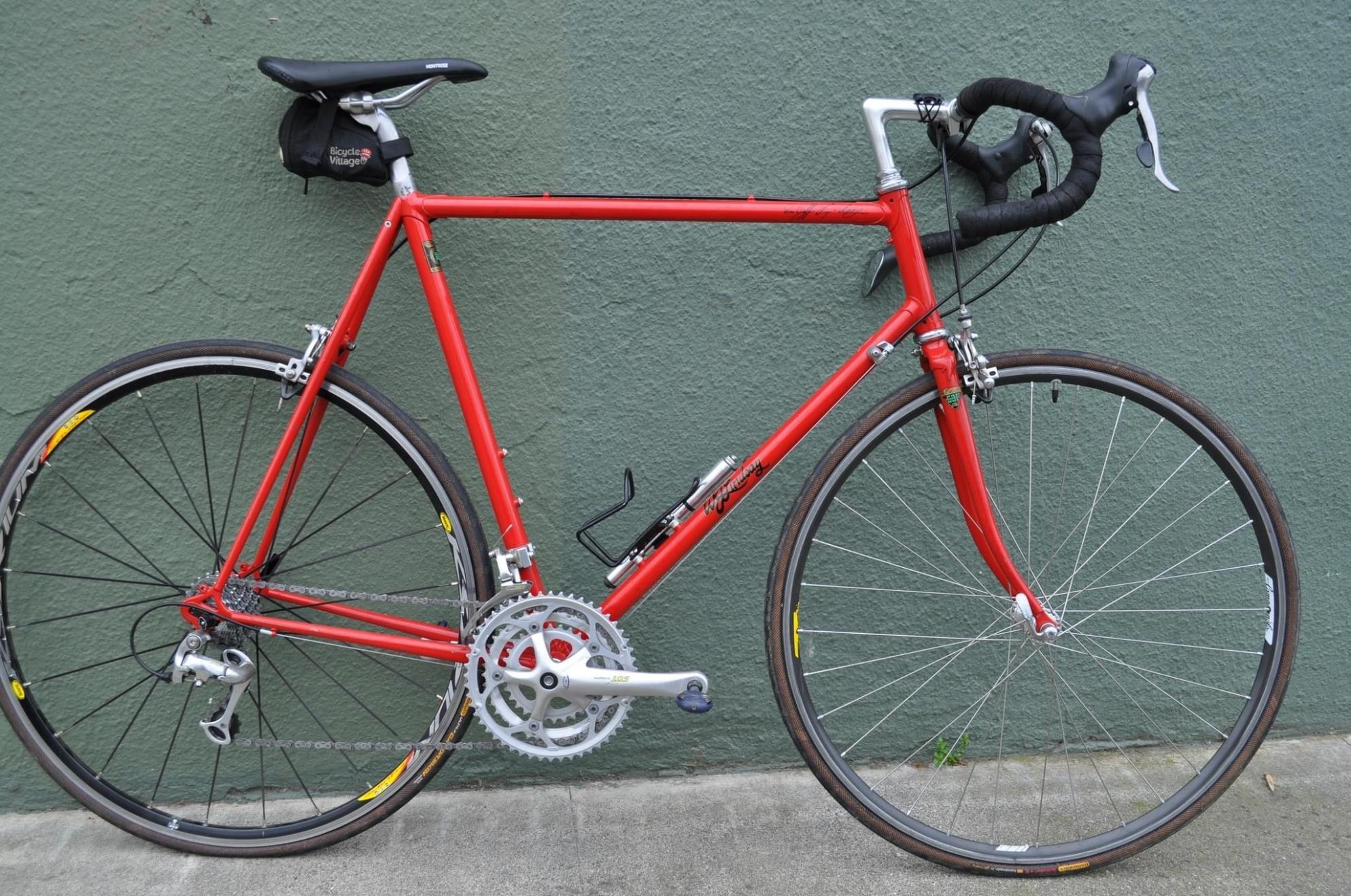 This bike, 1975 custom WJLindsay, was locked to my other bike, 1986 Ritchey Aspen, and in my closed garage. We were out of town on an extended assignment, from July 2nd through October 12th. It was stolen sometime within that time period. The thief somehow entered the garage and cut the cable locking the bicycles together.
