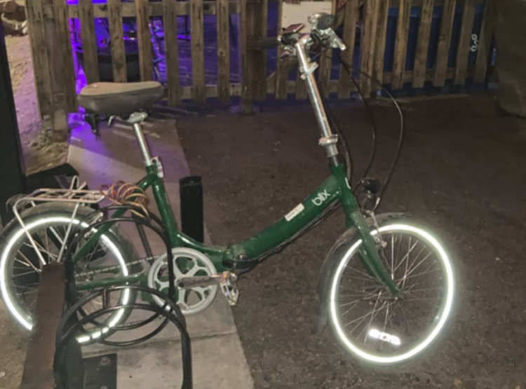 Bike was stolen while the battery recharged indoors. As battery was not taken, one would have had to pedal the full 50lb bike unassisted or fold it so it could be transported in a vehicle.