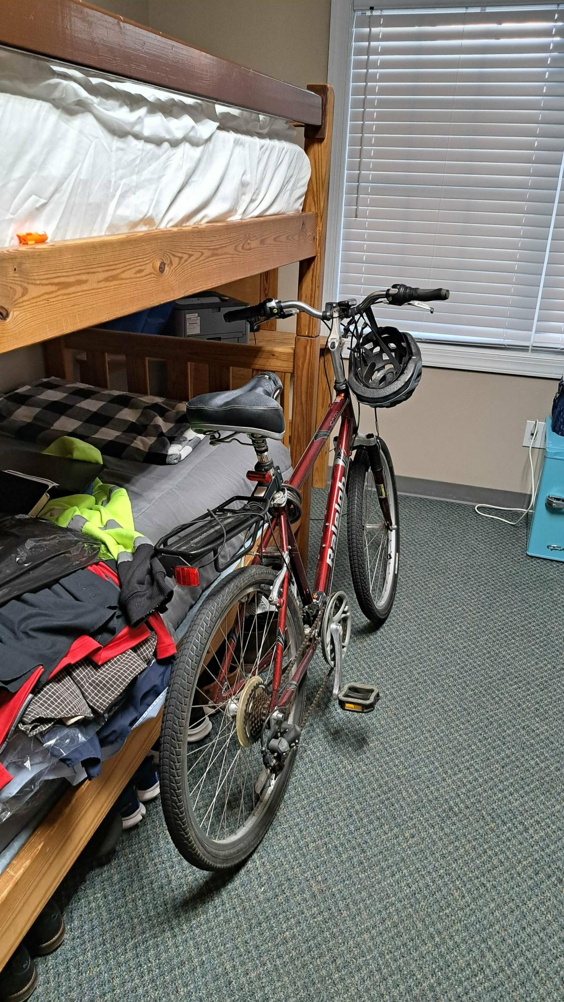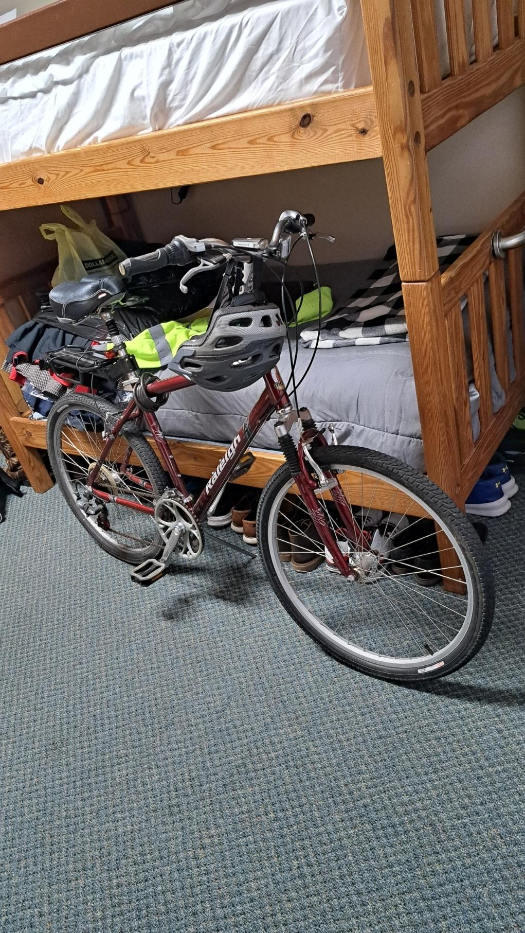 It was stolen from the bike rack outside the men's dorms where it was locked.