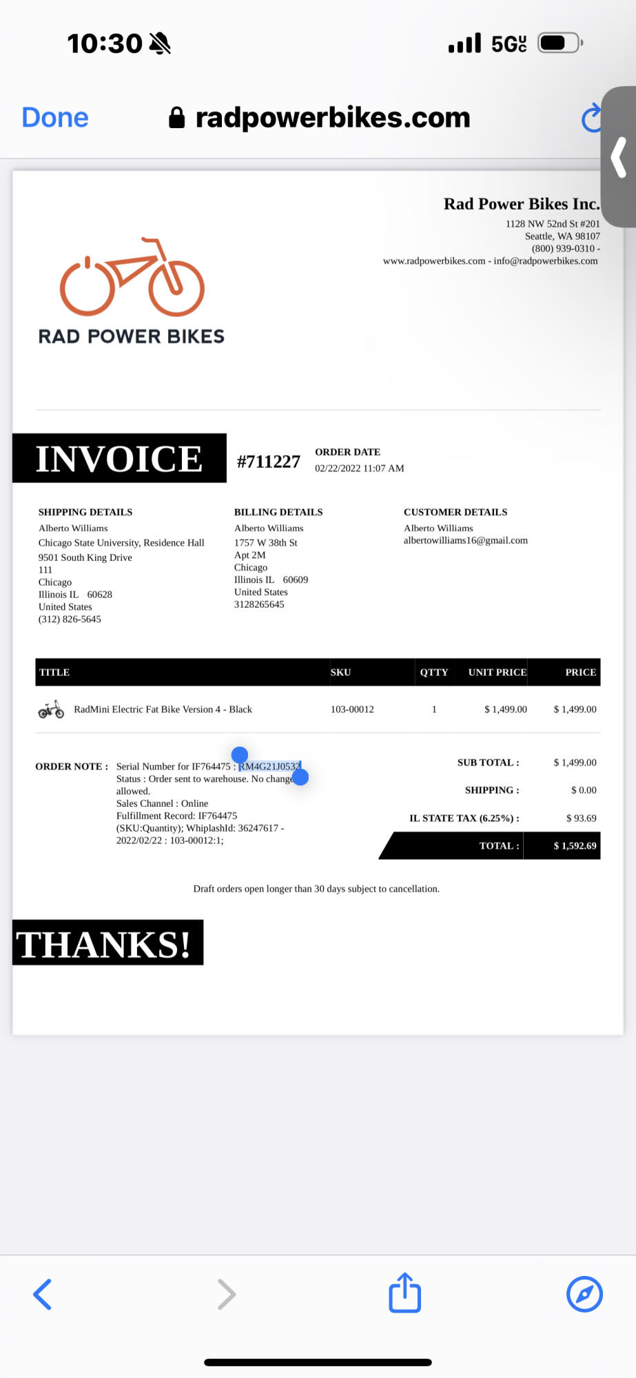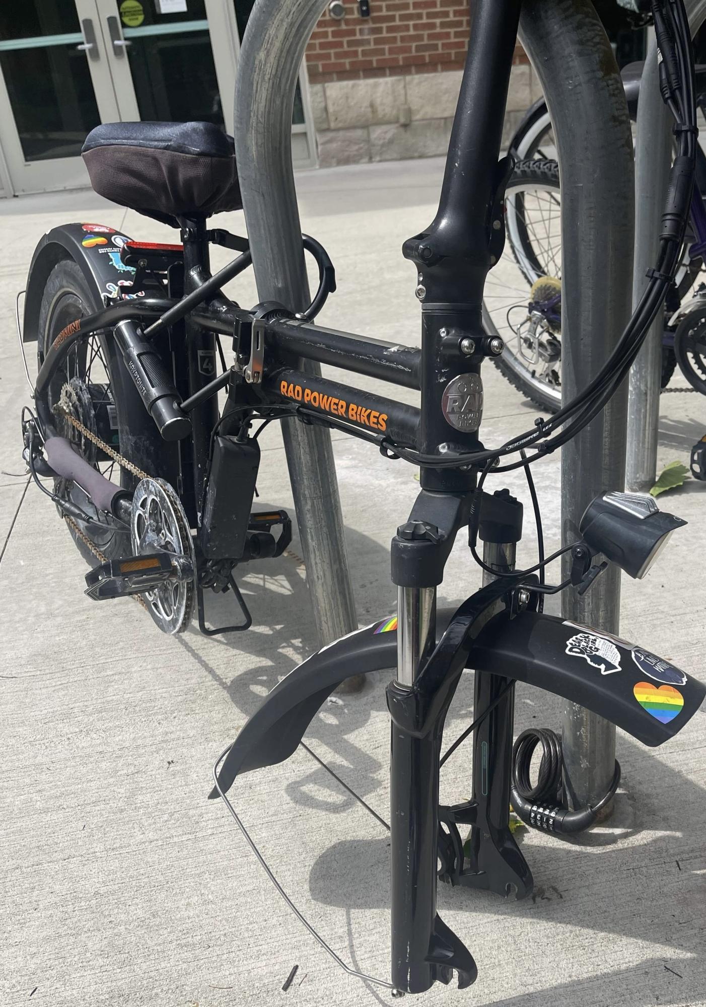 Was parked, chained, and locked on bike rack located outside Lighthouse Yoga Evanston. Combination lock chain was used. Perpetrator managed to bypass combination without breaking cord. Combination was found still locked when bike was missing at approximately 9A on 03/13/2024.