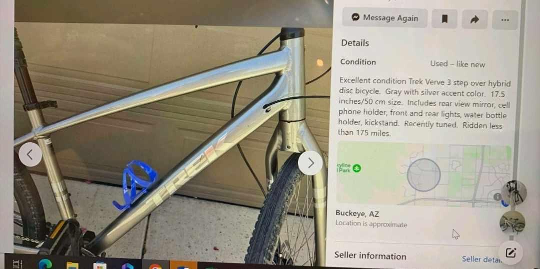 found that my gray Trek bike with a blue water bottle holder on the frame was no longer on my car bike rack. The bike